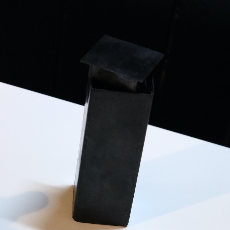 切り落とされたままの木材が黒鉛と調和する、